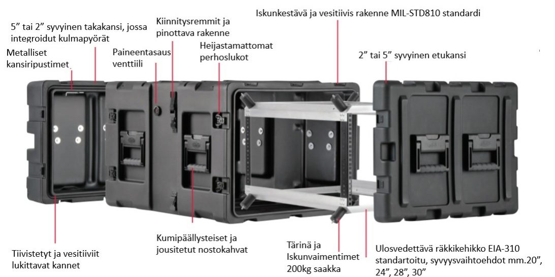 19″ liikuteltavat ja rikkoutumattomat räkkilaatikot